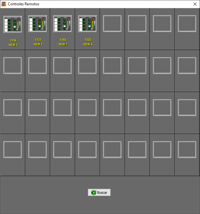 La primera ventana muestra una lista gráfica de todos los remotos reconocidos por el MAP mostrando el nombre asignado durante la instalación, su número de serie y enumerados del 0 al 31. Estos datos se almacenan en el propio remoto por lo que se deberá tener en cuenta si se precisa una sustitución.