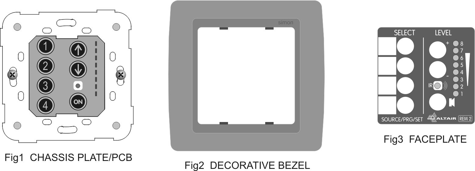 The unit is made up of three parts: set -plate/circuit board-, decorative frame and machined panel. Keyed version shown: