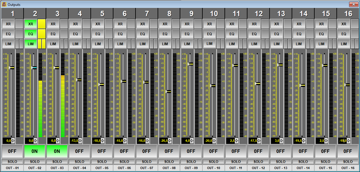 In this window we have a global view of all outputs from 1 to 8 (model MAP 128) or from 1 to 16 (model MAP1216).
