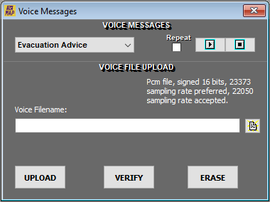 By checking the Repeat box the selected voice message will be played continuously in a loop.