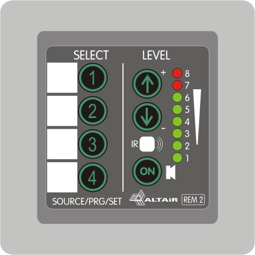 El dispositivo REM-2 /REM-2R es un control remoto por cable pensado para ser usado en instalaciones de audio equipadas con procesadores de Audio Altair de la serie MAP. El control remoto incluye un grupo de 4 teclas que pueden ser programadas desde el software Altair 3cMAP permitiendo a cada tecla un gran número de funciones (Acciones) como por ejemplo Recuperación de un Preajuste, selección de enrutamiento, control de salidas y entradas lógicas (GPIO), etc.