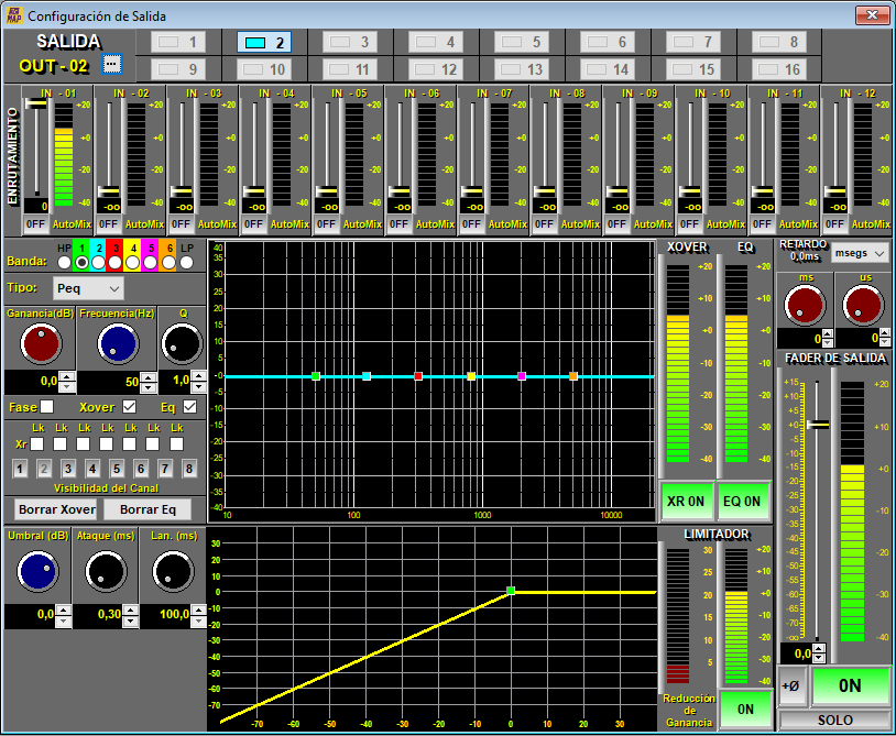 Checkbox Eq: Este botón abre o cierra la visualización del Ecualizador correspondiente. No afectan a las salidas.